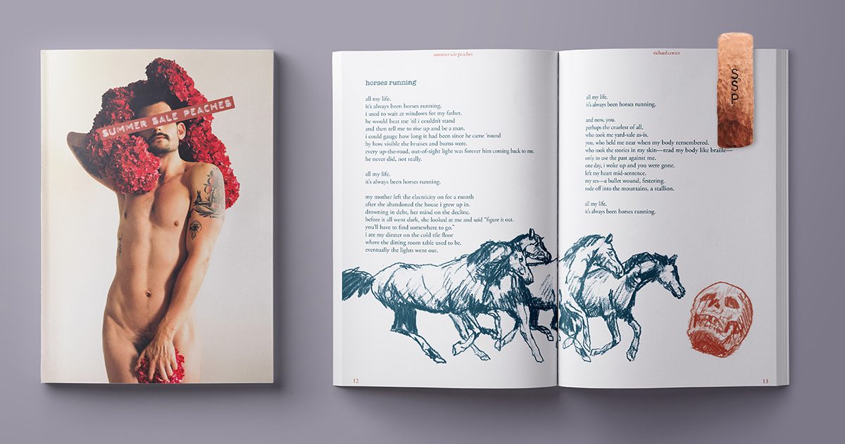 summer sale peaches is the first literary effort made by longtime singer-songwriter, richard cortez. the 22 poems, varying in size from two lines to two pages, are accompanied by the macabre and haunting illustrations of brooklyn artist kevin william reed, warm and dream-like portraiture of richard taken by photographer cole witter, and a blackened copper bookmark handcrafted by sculptor sam waxman.